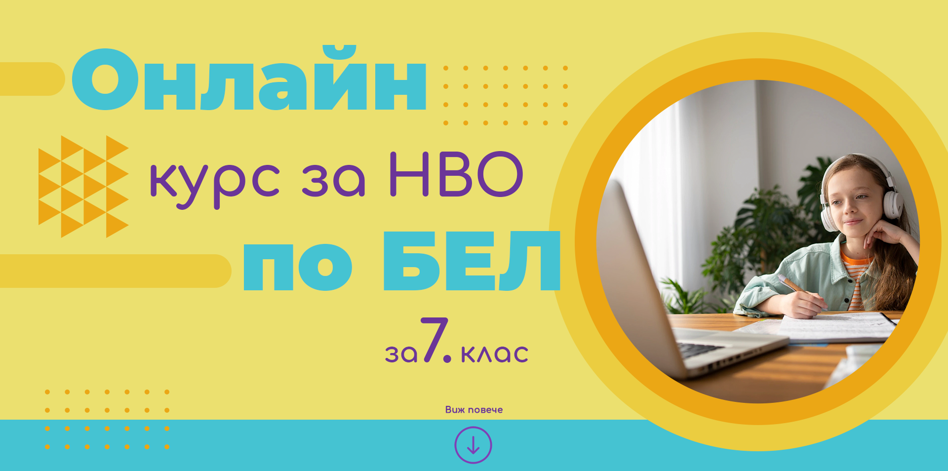 - Удобен съботен курс за подготовка за НВО по БЕЛ 29 урока в реално време (130 уч.часа). Срещи за консултации с менторите и две родителски срещи. Започваме на 5.11.2022 г. от 9:30 ч. до 13:00 ч.